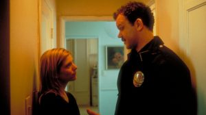 Tom Hanks plays a prison guard on the Death Row block of a Southern penitentiary. Despite the bleak and grim surroundings his humanity still shines through. He escorts and oversees the final moments of many men’s remaining breaths along the final walk of green linoleum tile to the electric chair. Enter one mysterious morn John Coffey (Michael Clark Duncan), a towering giant that seems to break all the rules each of the guards on cell block E has come to realize through their years. Coffey has been convicted of the rape and murder of two little girls, but as Hanks soon learns things aren’t always what they seem. The 7-foot miracle worker displays scenes of empathetic healing like to Christ himself. Hanks views are turned and his eyes open, and that’s just the beginning of the heartstrings being pulled. To release any more of the plot would be a crime punishable by Ole’ Sparky himself in the Green Mile.