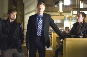 The antagonists are another example of how poorly written Firewall is. The villains are incredibly inept on all levels. Their entire plan is kaput from minute one because they didn’t bother to check that the bank was merging and changing its security access panels. Bill basically points to Jack and says, “You come up with a plan now.” The villains need the hero to come up with their scheme, how rich. The bad guys come across like they just took night classes in How to Take Hostages and Extort Money 101. Somewhere Bill must have skipped a few classes because he makes some boneheaded decisions. He kills one of his own men for getting tricked by Jack during surveillance. I suppose he?s trying to make an example but why, if you’re holding people hostage, would you decrease your numbers from five to four? Now you have one less person to get things in line. Bill also must have missed a psychological review to screen out that old Hollywood favorite, the one reluctant kidnapper who’s nice. Did Bill put this thing together through an ad in a newspaper?
