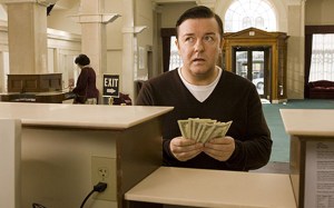 Mark (Gervais) is trying to romance Anna (Jennifer Garner) but even the waiter tells him she’s out of his league. She tells him upfront that she finds him unattractive and he will never have any hope of having sex with her. She’s more interested in Mark’s snide but handsome co-worker, Brad (Rob Lowe), who she feels is a better genetic match. Mark is about to be fired from his job, writing historical screenplays about the 13th century, and his secretary (Tina Fey) delights in telling him that she loathed every minute they spent together. This is a world without a filter. Until one day Mark goes to take out money from the bank, and something inside his brain switches. His balance is $300 but he asks for $800, and the bank teller apologizes for the computer error and gets Mark his full $800. He explains to his barfly friend Greg (Louis C.K.) that he said something that wasn’t. Nobody understands. “I’m a black Eskimo,” Mark says. Everybody takes him at his word. Mark is the only human on earth who has the ability to tell a lie, which he uses to his great advantage whether it be gambling, getting out of a traffic ticket, or unearthing a “lost” historical chapter about ninjas and aliens that makes for a stirring “non-fiction” film. Mark can’t even explain what he’s done, since the world lacks even a word for “lie.”
