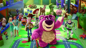 After a mix-up, the toys decide to take matters into heir own adjustable hands. They will sneak away inside a donation box for Sunnyside Day Care. The center seems too good to be true. The courtly Lotso Hugs Bear (Ned Beatty), who seems to lead the center, promises that all toys will never be forgotten again. When the children grow too old then a new batch moves in to play. It’s a toy’s dream, that is, until Buzz and the gang discover that they’re canon fodder for hyperactive, maniacally destructive toddlers. They can’t keep up with the daily abuse. Sunnyside Day Care is less a haven than a prison. New toys have to pay their dues and earn a place in the vaulted Butterfly Room, where young children lovingly interact with their toys. It’s a toy class system. Lotso refuses to cotton to rule-breakers, and toys are locked away nightly so they cannot escape. Woody must try to save his friends by breaking them out and getting back to Andy before he departs for college.