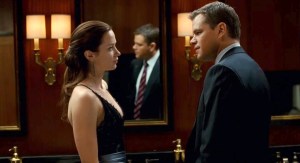 Damon and Blunt are a terrific team. This is easily Blunt’s finest role as an actress since breaking out in 2006’s Devil Wears Prada. The actress has taken many a role that makes use of her large crystalline eyes and her sometimes go-to acting response of simpering. But in this film, she finally finds that perfect role that makes use of Blunt’s modest, goofy charm. She’s never been a leading actress in a traditional set; there’s always been a delightful goofy appeal that set her apart. When Blunt offers her playful smiles and asserts those glassy eyes of hers, you too will be smitten. Her character is a charming woman thanks to Nolfi’s writing, but having an actress of Blunt’s ability fill her out is a blessing. Damon is at a point in his career where he just grinds out good-to-great performances that manage to be convincing in unassuming, dignified ways. Damon has never been an actor given to the superfluous. His character feels like a sincere sport, which is amazing considering he’s supposed to be playing a politician. He’s the kind of guy you’d actually stand in the rain to vote for, and you understand why Elise would keep a place tucked away deep in her heart for the dashing Damon.