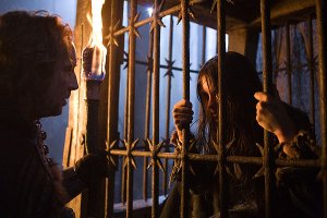 This is one thunderously boring movie, putting me to sleep three separate times. I had to rewind what I had missed, and each time I came to the conclusion that I really had missed nothing at all. The problem with the plot is that it makes a mystery pretty obvious. The group is carting around a teen girl in a cage. You’d think this would be something of a conversation starter, perhaps even an opening for a critical analysis of the Inquisition and religious fanaticism at this perilous time. Nope. The whole of the Bubonic Plague is being blamed on a teen girl and nobody seems to bat an eye at this. Sure there’s a few passing references to how killing is wrong (again, remember this took at least 12 years of slaughter to sink in), but the movie’s central storyline seems to shift to a “Is she really a witch?” query. Judging from what kind of film this is, you’d probably be safe betting on “yes” and, well, you’d be partly right. The reason this is no spoiler is because it’s revealed at like halfway through the movie. The girl’s chief defenders suddenly jump on the “burn her” bandwagon. Strange things are following the troupe, so it’s pretty obvious who is at play. However, the girl is no witch but is inhabited by a demon, which seems like splitting hairs. When the super cheesy CGI demon/gargoyle shows its face, the creature actually speaks English but in a really speedy and comical voice that makes it hard to be taken seriously. An earlier cut of the movie did not involve this dumb CGI demon but the girl herself. At least that route would have saved the producers some money and unintentional laughter.