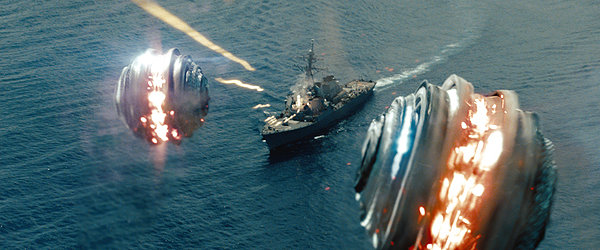 I’m relieved that Berg has left behind his rigid docu-drama cinema verite approach he’s patterned after working on 2004’s Friday Night Lights. Berg’s verite style felt completely mismatched with 2008’s Hancock, an inexplicable global hit. With Battleship, Berg’s cameras settle down and give you plenty of action to soak up. Berg’s first foray into action, 2003’s The Rundown, was like the announcement of a great new talent and the herald of The Rock’s ascent in action. I’ve been waiting for Berg to return to that style he displayed with The Rundown, a slick, highly stylized flair, brimming with robust energy that popped at all the right moments. Thankfully, with his biggest budget yet, it’s like the return of the old Berg. Perhaps it’s just a reaction against the overindulgence of the “shaky cam” action style popularized by the Paul Greengrass Bourne films, but it’s nice to be able to actually follow what is happening. Berg’s cameras find different and exciting ways to frame the action. I enjoyed the speedy zoom outs to illustrate the size of the field of battle. The visuals really do feel like Berg is parlaying Bay’s shooting style, the tawny glow of people’s skin, especially women, a.k.a. sex objects, the fetishized ogling of giant toys/military hardware, the soaring camera. But unlike most of Bay’s pedigree, it’s spectacle on a mass scale without turning into a glorified video game.