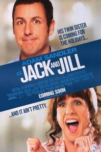 I was anticipating bad, I was anticipating outlandishly bad, but nothing can prepare you for how stunning and jaw-droppingly awful Adam Sandler’s reported comedy Jack and Jill truly is. The movie swept the Razzie Awards in all categories this year, a historic feat. Sandler plays a rich ad exec and his braying, boorish twin sister, who Al Pacino, in a strangely committed performance as himself, falls in love with for no discernible reason. I’ve seen my fair share of craptacular cinema, and yet this movie is bad on a rarely seen level of human tragedy; it feels like the movie came from a different dimension, where they had no concepts of human relations, reactions, expectations, or senses of humor. It feels like you’re watching a cultural artifact of a civilization in decline. I haven’t been a fan of Sandler’s brand of naughty-yet-safe humor for a while, but this movie is weirdly cruel to all sorts of people, like Mexicans, atheists, adopted kids, Jews, and human beings with working senses of humor. The quality of comedy includes gems like, “Play twister with your sister,” and, “These chimichangas are making a run for the border.” The rampant and nakedly transparent product placement for Carnival Cruise and Dunkin’ Donuts is obscene. This is a charmless, witless film, and when it tries to wring actual emotion out of its daft scenario, the whole enterprise just implodes. Jack and Jill is so odious, torturous, reprehensibly bad that it feels like one of the joke movies that Sandler made in 2009’s Funny People. You feel like the entire movie is one long joke put on by a contemptuous Sandler. I think my good pal Eric Muller had it right; we’re on the tail end of Sandler’s deal with the devil. Jack and Jill is why the terrorists hate us.