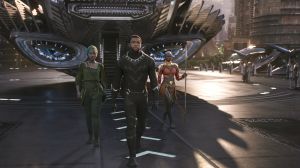 Now some careful readers might note that I haven’t done much to emphasize the actual action of the super hero action movie, and that’s for a good reason. Black Panther stands stronger on theme and character than it does its actual action sequences. Coogler had a wonderful sense of scale and verisimilitude with 2015’s Creed, relying on long takes to put the audience in the heightened drama of the boxing ring. With Black Panther, the action sequences can lose a sense of immediacy. Many happen at night or are filmed and edited in ways that diminish some of their impact, like hand-to-hand combat in splashing water where the splashes obscure the activity. Other scenes felt like a video game CGI cut-scene. Speaking of video games, Black Panther’s suit has a crazy ability to absorb the kinetic energy of weapons, which means the stakes take a dip when our hero can merely just stand and allow himself to get shot repeatedly. The payoff for this absorption is a giant energy shockwave but it plays out like a fighting game’s special feature. It’s an aspect that’s not really utilized in a satisfying or unique way. The final showdown between Black Panther and Killmonger feels too weightless in execution. It’s meant to even the playing field by nullifying their extra abilities, but if they both have the same “Panther powers” isn’t the field already even? The third act, the usual punching bag for MCU critics, is the best part of the movie from an action standpoint. It utilizes the characters in significant ways and allows for organic complications while still maintaining its wider sense of spectacle. Plus it’s one of the few action sequences that allow all the pyrotechnics to be enjoyed during the visibility of day.