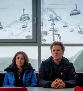 Both movies follow families on skiing vacations where the father (Johannes Kuhnke as Tomas, Will Ferrell as Pete) abandon their wives (Lisa Loven Kongdli as Ebba, Julia Louis-Dreyfus as Billie) and children when an approaching avalanche looks to be imminently deadly. It proves to be harmless but the scare it created was very real, and the damage to this family is also very real. In their dire moment of need, as death looked increasingly possible, this family watched its patriarch run away to save himself (and not before grabbing his phone). The father denies running away, finding his own slippery slope of excuses to pretend and convince his family that everything is still the same.