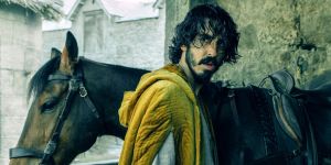 Gawain (Dev Patel) is the nephew to the King of England (Sean Harris). He longs to be accepted as a respected knight but he has no adventures to his name. Then one Christmas, a Green Knight (Ralph Ineson) enters the kingdom and challenges any daring knight to a game. That knight can inflict whatever blow or mark upon him, but then the Green Knight will return the exact favor in one year’s time. Full of bravado, Gawain takes mighty Excalibur and decapitates the Green Knight. Turns out the knight is not dead. He only picks up his fallen head and promises that in one year, he’ll deliver the same to Gawain. The months pass and Gawain is drinking and sleeping away his last remaining time before finally accepting to meet his fate. He rides out of Camelot in search of the Green Knight and perhaps a solution out of his predicament.