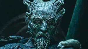 Where Lowery’s plot and ambition do come together, thankfully, is with his conclusion, which I will spoil in the following two paragraphs. In the original Medieval legend, Gawain meets the Green Knight who proves to be the lord of the manor in disguise. The man playfully chides Gawain for flinching and wearing a sash he felt would spare him of harm. He then says Gawain is “the most blameless knight in all the land,” which makes little sense, and then Gawain joins the other knights, and they all have a big laugh about the jape played on Gawain. That’s not exactly a satisfying ending and takes away any personal growth Gawain might have earned. In the movie, the Green Knight is for real. Gawain initially lowers his head, trying to summon the courage to meet his death, but he flees and apologizes, escaping the Knight’s retribution.