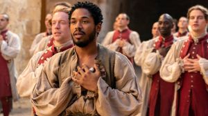 Dinklage (I Care a Lot) is an excellent choice for Cyrano. While he might be the weakest singing voice of the cast, Dinklage is definitely the most accomplished actor and proves it again. His character’s inner struggle and true feelings consuming him is wonderfully portrayed by Dinklage. He has his big outbursts, where he inflicts his wit like a sharp-edged weapon, and others where it’s the total of years of frustration from being sidelined and overlooked and discounted, but it’s the quieter moments where Dinklage retreats behind his sad puppy eyes that got me the most. Bennett (The Girl on the Train) has a spark to her that reminds you why Cyrano would fall in love from a distance. Her light at the beginning of the movie threatens to be snuffed out by bad men, and it feels like a real loss. Bennett and Dinklage are also reprising their roles from the stage musical, so their natural chemistry and comfort with the roles improves the experience. Mendelsohn (Captain Marvel) is a pro at playing those officious, lecherous, pathetic roles, and once again he’s on target. His creepy rendition of “What I Deserve” sounds like the skin-crawling mantra for male chauvinism writ large. It might even make you retch.