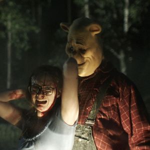The surprise horror movie Winnie the Pooh: Blood and Honey is likely a preview of what’s to come when well-known stories and characters fall under the public domain. However, the cheerful Pooh that most people recall is from the Disney animated shorts and films which began in 1966 and still fall under current copyright laws. So if you were gonna make a killer Pooh bear, he better resemble author A.A. Milne’s original creation and not the Disney version or else you’ll incur the wrath of the many lawyers of the Mouse House. In writer/director Rhys Frake-Waterfield’s version, Pooh and Piglet are on a killing spree after their dear Christopher Robin (Nikolai Leon) grows up and abandons them (they ate poor Eeyore). However, most of the movie is about thick-bodied malevolent men in masks preying upon young British women who are regularly in their underwear or bathing suits. To say this movie is creatively lacking is an understatement. Blood and Honey isn’t just a bad B-movie, it gives a bad name to enjoyably bad B-movies.