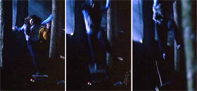 It’s hard to feel for Matt when he’s such an arrogant dope. There are two standout moments that reflect how stupid Matt is. The first is after Dawn goes missing in his motel room. Matt is baffled and tries to work it all out in a bathroom, as most men do. His room is then broken into by an axe-wielding intruder. Matt manages to hide and avoid him. Minutes later, the axe-wielding intruder returns and the two get into a brawl. Matt wins and the intruder runs away again. After this ruckus, Matt lays down on the motel bed and goes to sleep. He dozes off in a room that has been broken into twice by a man with an axe! The second incident happens late in the film as two hillbilly brothers chase Matt through the Blackwoods. One of the brothers has a gun and the other more sporting brother has a bow and arrow. Matt kills the brother with the gun and takes his weapon. Suddenly an arrow zips over his head and sticks in the tree. Behind him is the other brother, and even though this brother is currently unarmed and at a distance, he convinces Matt to drop his pistol. The ending twist only adds more fresh accounts of Matt’s idiocy.