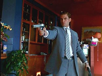 Sanctimony is really a crossbreeding of what Boll liked best about Seven and American Psycho. Like David Fincher’s masterpiece, Boll really wants his serial killer to be slicing and dicing with a message; this killer gets his kicks from cutting out different body parts. Tom eventually goes after his pursuer’s pregnant wife, just like Seven, and clumsily aims for some kind of myopic preaching. Tom sure does like to spit out a diatribe about the plague of humanity, even after he’s just dismembered a call girl. Boll seems very intent on crafting Tom into a Patrick Bateman-esque character, one whose soul has been lost to the bottom line of the business world (how many hotshot stockbrokers are based in Seattle?). But while American Psycho was complex, satirical, and deeply metaphorical, Sanctimony is stupid. Boll wants Tom’s speeches to have terrifying power to them, but instead they come across as theatrical and lifeless. Tom says, “Raping and pillaging have been the official government policy of any government that’s ever thrived.” If you’re impressed by this assertion, Sanctimony might just be the movie for you. If you yawn at this sub-standard Political Science 101 ejaculation, then you’re likely beyond the film’s short-armed reach. Boll’s writing has a vague inauthentic feel, like he learned everything about crime procedural from TV. In the year 2000, a character actually summarizes America with the words, “apple pie and baseball.” By now I think the only people that characterize America that way are conservative politicians and out-of-touch, disdainful foreigners.