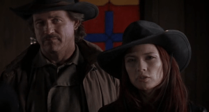 Boll fails to curtail these anachronisms that hurt Bloodrayne’s tone and execution. His lack of interest in details or sense also puts the film at a disadvantage. There’s a late scene where Katarin suddenly is wearing a modern purple women’s jacket, like she just got it off the rack from TJ Max. Why does Vladimir wave his sword around all the damn time, but when it comes to actual combat he tosses it back and forth in his hands like a hot potato? A character has a hidden room of weapons, but it’s not much of a secret room when the lever to open this space is dubiously displayed for all to see. Domastir (Will Sanderson, making his fifth appearance in a Boll film) has a hilariously bad haircut that looks like crop circles were shaved into his head. Why, after Rayne has joined the Brimstone fighters late in the film, do we need her in a training montage? I’m pretty sure by that point Rayne can hold her own.