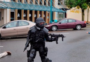 Let’s talk about the bait and switch nature of the movie’s title as well as the DVD cover advertising. When you see a masked gunman standing next to a burning Capital building and the title proclaims “Capital Punishment,” I think 99 out of 100 people would correctly assume the majority of the action takes place in D.C. and would be directed at elected officials. Oh how wrong those 99 people would be (the 100th was just dumb luck, so don’t get too smug). The entire plot revolves around Bill holding a TV station hostage. That’s it. No government building, no government officials, nothing even remotely related to Washington D.C., especially when the local gas stations are for “Canada Petrol.” Before viewing, I assumed that Rampage 2 was going to be a combination of the first film and Boll’s nearly good Assault on Wall Street, bringing a populist fury to the lawmakers in Washington. It seems like the next step on Boll’s populist journey. Instead, most of the film is a series of ugly vignettes of Bill terrorizing the frightened station employees by gunpoint, demanding his interview and an airing of his nihilistic rhetoric. Even at a little over 85 minutes, the film feels laboriously padded out and stretched thin. At one point, Chip accidentally breaks the DVD Bill demanded be broadcast. The movie literally spends almost eight minutes on this subject, like it’s a great uptick in suspense. “I’m sure he’s got another one,” a SWAT officer says. “He will not shoot you, trust me,” he says, unhelpfully. Lo and behold, he does have an additional DVD copy. “Always have a duplicate,” he says. Wasn’t that worth spending valuable time on?