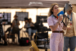 This goes along with the behind-the-scenes camaraderie of the found families of filmmaking, celebrating all the many collaborators that go into building these large-scale entertainment ventures. When they’re going through the steps of how to capture a big explosion or stunt, it’s educating the audience along to better anticipate and appreciate. The Fall Guy is clear about its sincere homages, recreating moods and style from action veterans like Michael Mann, James Cameron, and Michael Bay. It’s a movie celebrating movies, and if you’re a fan of the process like me, then you’ll easily join in on the revelry. I’m sure there are famous stunt performers littered throughout, getting Leitch’s favorite colleagues the platform they deserve. The movie’s insider satire is pretty glancing, without anything too vicious or specific about Hollywood stars, especially epitomized by Taylor-Johnson’s send-up of self-absorbed actors. The concept of Metalstorm, a sci-fi Western with elements of Dune and Mad Max, is a project where the silly mash-up of “cool” elements is the unspoken punchline, the sheer stupidity of this concept, magnified by Tom Ryder channeling his most laconic Matthew McConaughey impression.