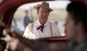 The filmmakers elect to frame the movie through a curious narrator – a retired KGB officer (Jon Voight) that has followed the life and times of Ronald Reagan going back to his early days. Apparently, this Soviet spy saw true greatness in Reagan way back and thought he might become a threat to the continuation of communism. It’s a strange perspective to be locked into, the enemy complimenting Reagan from afar and ultimately crediting the man’s faith in God as the reason that America triumphed over the Soviets. It means then that every scene has to be linked to our KGB narrator, and sometimes that can get questionable, like when he’s talking about Reagan’s time as a teenage lifeguard, or the time Reagan was being bullied by local kids, or Regan’s intimate conversations with his first wife, Jane Wyman (Mena Suvari). The scenes in Hollywood are so clunky, especially a dinner where the movie wants us to look down on Dalton Trumbo, blacklisted Hollywood Ten writer. This man stood for his principles and suffered a real backlash, and you want me to think of him as misguided and part of some liberal communist cabal (the movie also includes a picture of Oppenheimer as part of its Soviet influence targets)? By insisting upon a narrator that’s not Reagan, that means this KGB spy it also means that we’re seeing the world of Ronald Reagan through an interpreter’s prism, which makes the scenes even more curious for being such an unexpected cheerleader over Reagan’s amazing instincts and abilities. It would be like having Stalin narrate a biopic about FDR and showering the president with gushing praise.