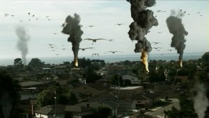 Nguyen has been working on the story of Birdemic for five years. This labor of love was also Nguyen’s platform to make mankind think about its effect on the environment. Yes, the movie has all sorts of environmental messages squeezed in, where characters debate the ecological motivations of the bird attacks. A Tree Hugger (that’s his literal screen credit) theorizes that the birds are fighting back to protect Mother Nature, that’s why they seem to go after cars and gas stations. A doctor in Canada (we’re informed that the van leaves the country by watching it drive past an arrow pointing to the U.S. border written in sidewalk chalk) theorizes that the birds from Canada were infected with the notorious bird flu, and then it spread south. The doctor also gets the opportunity to declare man the most deadliest threat of them all, thus fulfilling a sci-fi disaster movie requirement. The TV news alerts about the peril of global warming, and even though the film is set in 2008, the characters see An Inconvenient Truth at the theaters (“An important movie!”). The environmental message doesn’t begin to approach cohesive commentary.