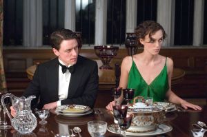 Atonement is visually ravishing to watch. The cinematography by Seamus McGarvey is lushly colorful and blends light and shadow to an extraordinarily effective degree, draping the performers in contrasting colors that pop. Wright’s camera always seems to be perfectly located to discover beautiful compositions indoors and out; the movie is just visually pleasing on all fronts, like seeing Knightley in her dark green dress bathed in the glow of police lights at night. At several points, however, the film’s look does get overly soft and glossy, like the cameraman smeared gobs of Vaseline over the lens. The period costumes and production design are agreeably period-y. The musical score has moments of great lyrical poignancy and then it shatters when the score resorts to integrating the sound of a clacking typewriter as a percussive instrument. I wanted to beat my head against a typewriter to make it stop.