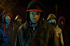 On New Year’s Eve in a South London ghetto, a very different kid of firework is lighting the moonlit sky. An alien race is crashing to Earth as fiery meteorites, which the kids of the neighborhood term “Gollums.” Moses (John Boyega) is the leader of a group of teenage wannabe hoodlums. Their crazy night begins with mugging Sam (Jodie Whitaker), a nurse who lives in the boys’ apartment complex. Moses and his crew later run into Sam and need her help when one of their own is injured. The alien monsters have descended upon their block, scaling the apartment building looking for easy prey. Moses and other block residents band together to battle a common foe, the outer space monsters, which have the misfortune of trying to invade the wrong neighborhood.