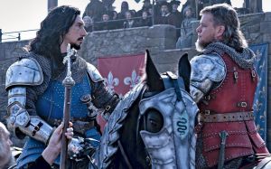 In contrast, The Last Duel is based upon a true story of the last time France used judicial trial by combat. It’s the 1300s, and Sir Jean de Carrouges (Matt Damon) is a soldier for King Charles VI and looking to repay his mounting debts. He enters a marriage with Marguerite (Jodie Comer) for her dowry and promised land. However, Sir Jean finds his former squire and friend Jacques Le Gris (Driver) the recipient of the land, having been gifted it as thanks from the local lord, the carousing Pierre d’Alencon (Ben Affleck). Sir Jean is outraged by the offense. Then the bombshell hits: Marguerite accuses Le Gris of raping her. Le Gris denies it to his core. Sir Jean challenges his former friend to a trial by combat whereupon only one man will walk away alive.