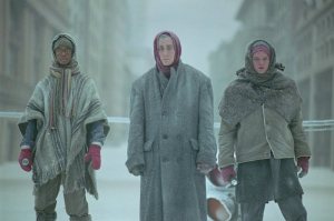 For a good hour, The Day After Tomorrow is great escapist entertainment. The scenes of destruction are riveting, and the moments leading up to them have great suspenseful pacing. The film’s climax is its half-way point, which is never a good sign. After all the floods, rain, snow, twisters, and everything Mother Nature has in her arsenal, we are left with characters scrambling around running from … wolves. Going from tidal waves to wolves is not exactly an increase in suspense.